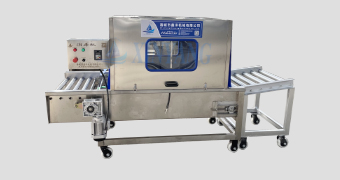 將消毒液體進(jìn)行離分子霧化后輸入到霧化室,箱體經(jīng)過霧化室時周身被霧化后的消毒液覆蓋從而達(dá)到消毒殺菌的效果,該設(shè)備配合消毒液對物品外包裝進(jìn)行消毒滅菌。